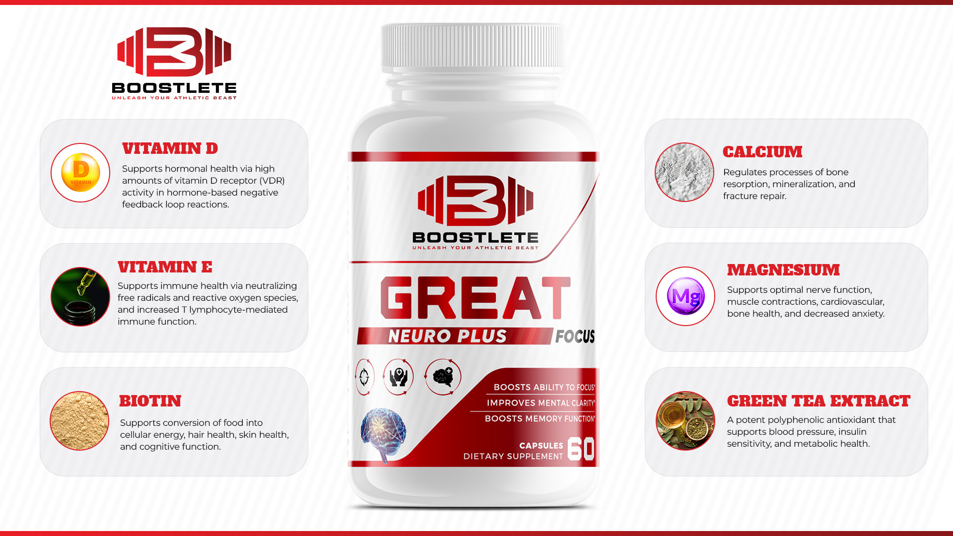 | Great Focus is formulated to boost cognitive function, mental clarity, focus, immune function, and energy production.