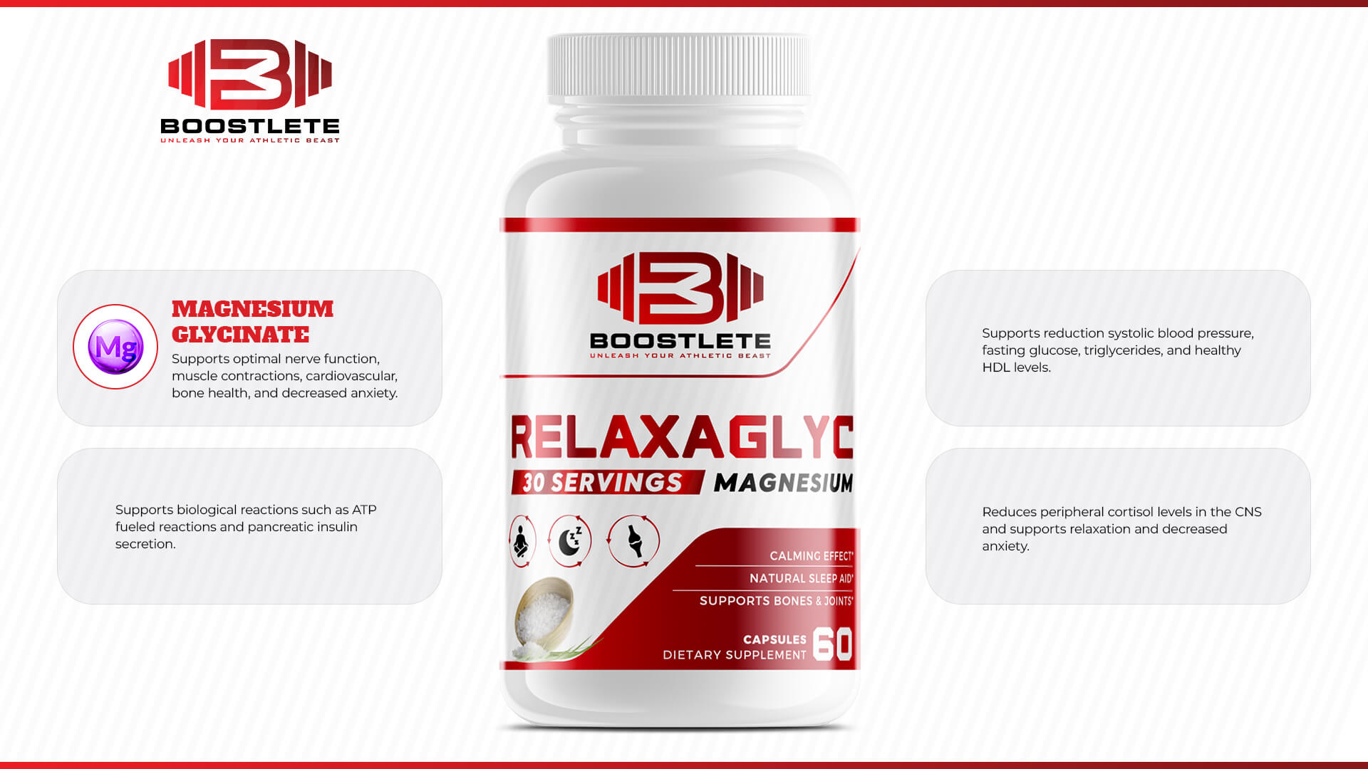 RelaxaGlyc Magnesium is formulated to support optimal nerve function, muscle contractions, cardiovascular, bone health, and decreased anxiety.